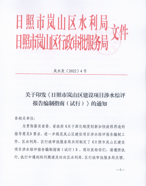 二是推行“三合一”涉水綜評(píng)報(bào)告。為優(yōu)化營商環(huán)境,嵐山區(qū)水利局會(huì)同嵐山區(qū)審批局聯(lián)合印發(fā)《日照市嵐山區(qū)建設(shè)項(xiàng)目水影響評(píng)價(jià)編制指南(試行)》和《日照市嵐山區(qū)建設(shè)項(xiàng)目水影響評(píng)價(jià)報(bào)告編報(bào)審批管理規(guī)定》,在全市創(chuàng)新性的將涉水相關(guān)的水土保持、水資源論證、防洪影響評(píng)價(jià)“三合一”改革成“涉水綜評(píng)報(bào)告”,實(shí)行“三合一”審批后,將原有的三個(gè)評(píng)審環(huán)節(jié)合并為一個(gè)評(píng)審環(huán)節(jié),一個(gè)項(xiàng)目在涉水審批上不再多次評(píng)審,將節(jié)省三分之二審批時(shí)間,既為企業(yè)減少時(shí)間成本,又為企業(yè)減少制度成本,從根本上達(dá)到為企業(yè)減負(fù)的效果。